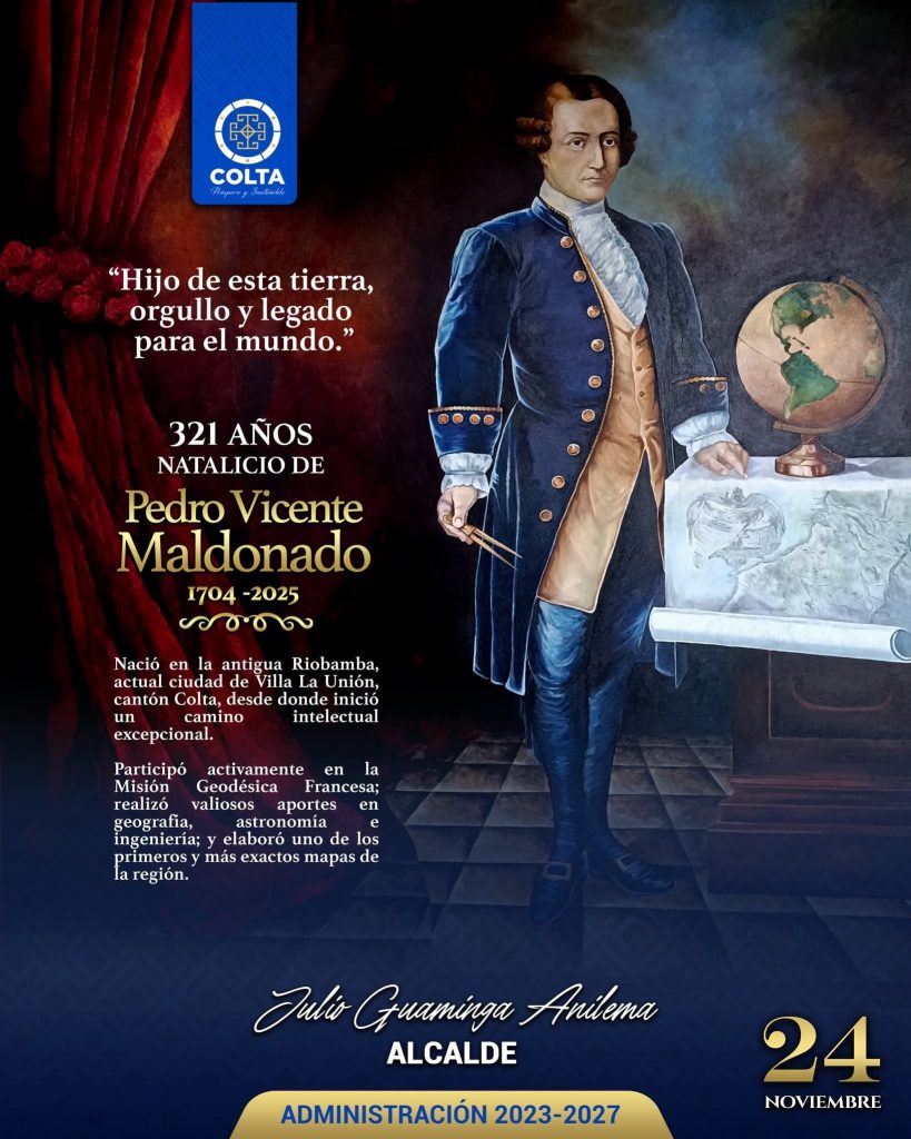 Rendimos homenaje al Sabio Pedro Vicente Maldonado, natural de la antigua Riobamba, actual Villa La Unión del cantón Colta, desde donde inició un camino intelectual excepcional.